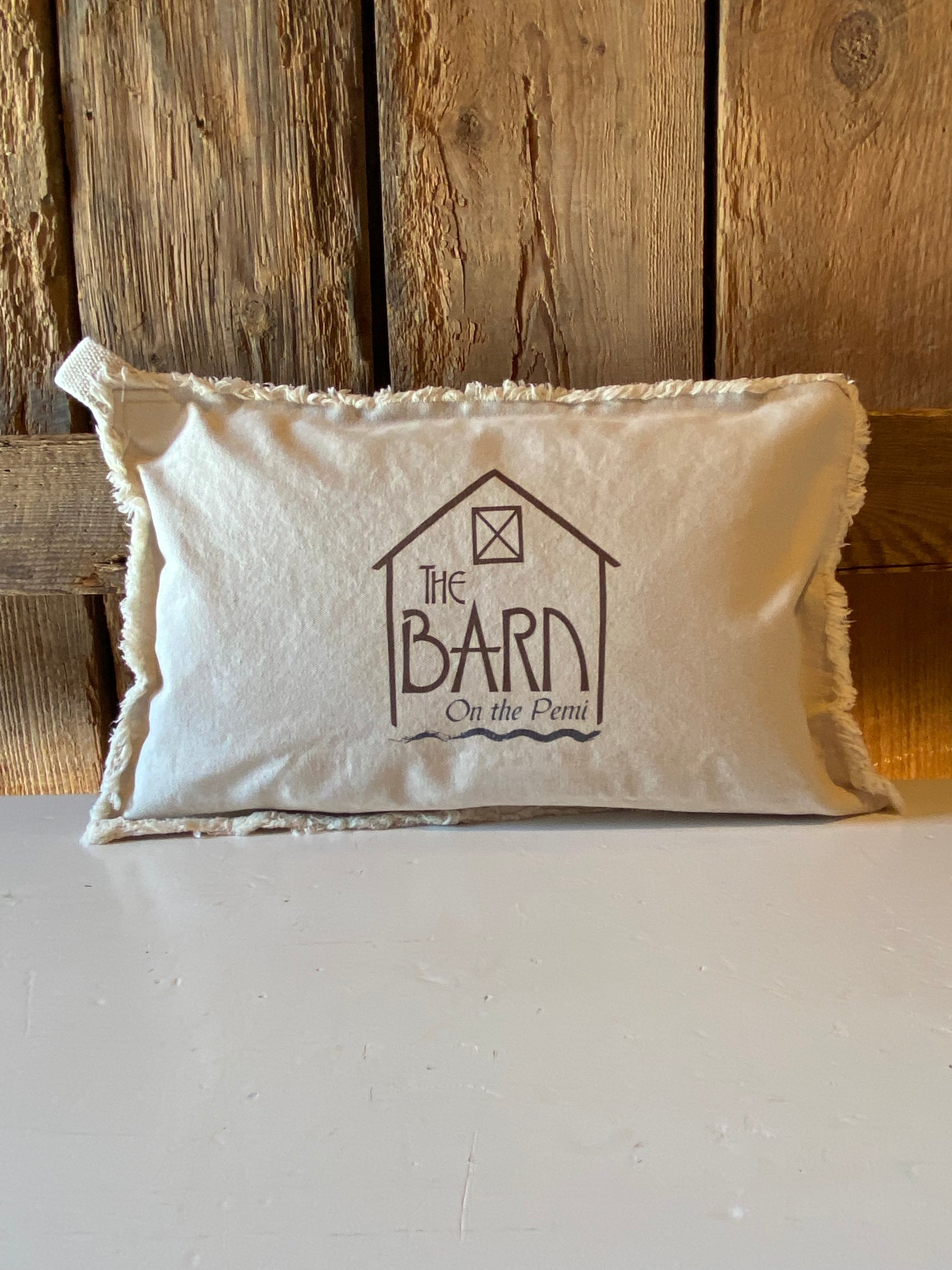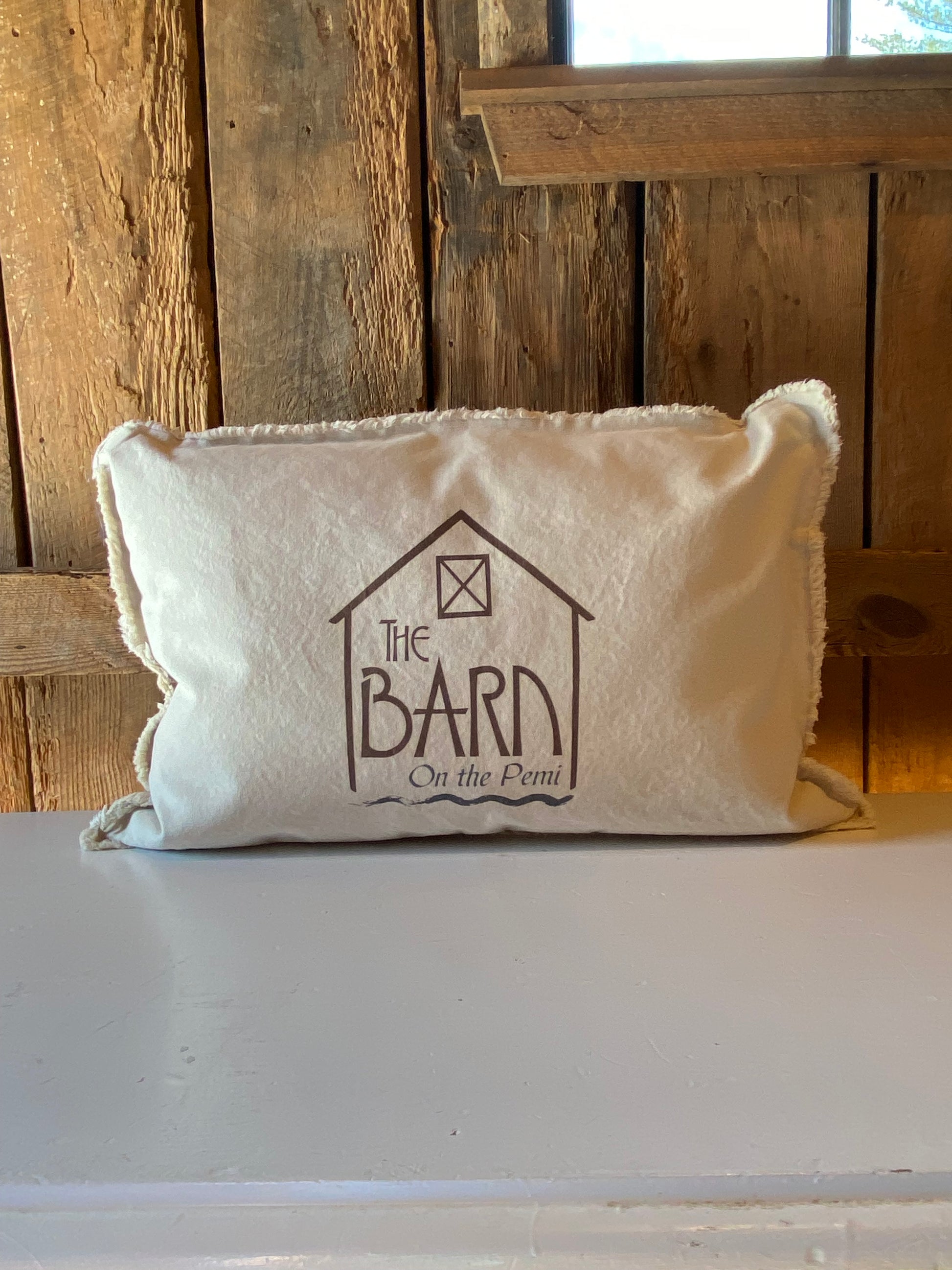 Classic off-white throw pillow with Barn on the Pemi logo. Available in three sizes.